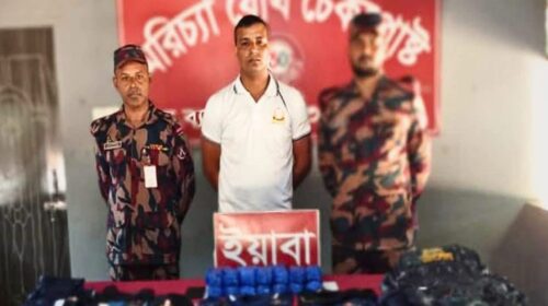 মরিচ্যা বিজিব’র চেকপোষ্টে ভুয়া নৌবাহিনী সদস্য সেজে পরিচয় ৪০ হাজার ইয়াবাসহ এক জন পাচারকারী আ’টক।