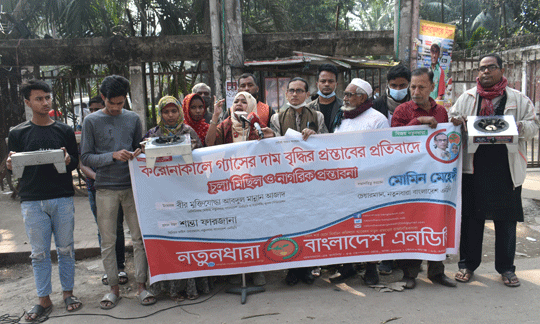 করোনাকালে দ্রব্যমূল্য বৃদ্ধির সংকটকালে নতুন করে আবারো গ্যাসের দাম বৃদ্ধির প্রস্তাবের প্রতিবাদে চুলা মিছিল ও নাগরিক প্রস্তাবনায় সভাপতির বক্তব্যে তিনি উপরোক্ত কথা বলেন। ২৮ জানুয়ারি বেলা ১১ টায় জাতীয় প্রেসক্লাবের সামনে অনুষ্ঠিত কর্মসূচিতে বক্তব্য রাখেন নতুনধারা বাংলাদেশ এনডিবির প্রেসিডিয়াম মেম্বার বীর মুক্তিযোদ্ধা কৃষকবন্ধু আবদুল মান্নান আজাদ, সিনিয়র ভাইস চেয়ারম্যান শান্তা ফারজানা, ভারপ্রাপ্ত মহাসচিব নিপুন মিস্ত্রী, সাংগঠনিক সম্পাদক ওয়াজেদ রানা, পুরান ঢাকার রাজনীতিক আবুল হোসেন, মনোয়ারা বেগম প্রমুখ বক্তব্য রাখেন।